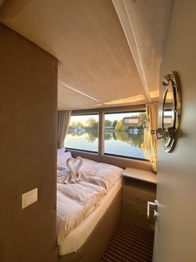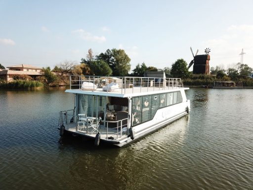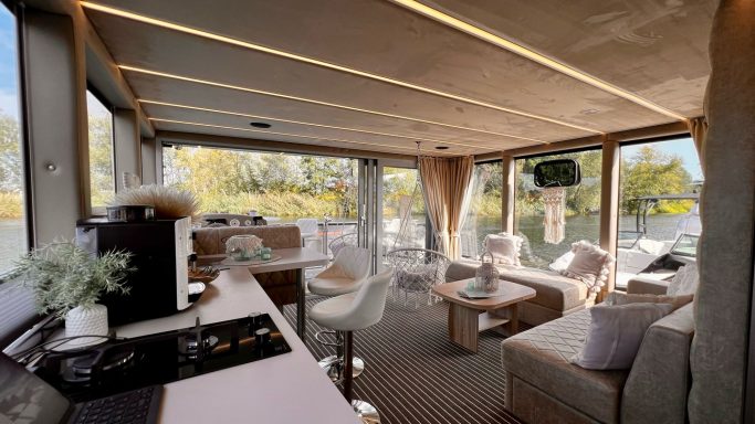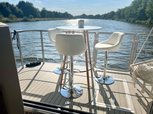 Schlafmöglichkeiten für bis zu 6 Personen (4+2). Das Hausboot verfügt über zwei Schlafzimmer, die mit komfortablen Doppelbetten (ca. 160x200 cm) ausgestattet sind. Im Salon kann das gemütliche Sofa in ein Schlafsofa umgewandelt werden. Die Betten sind mit einem Tellerfedersystem und hochwertigen Kaltschaummatratzen ausgestattet, die für einen erholsamen Schlaf sorgen.